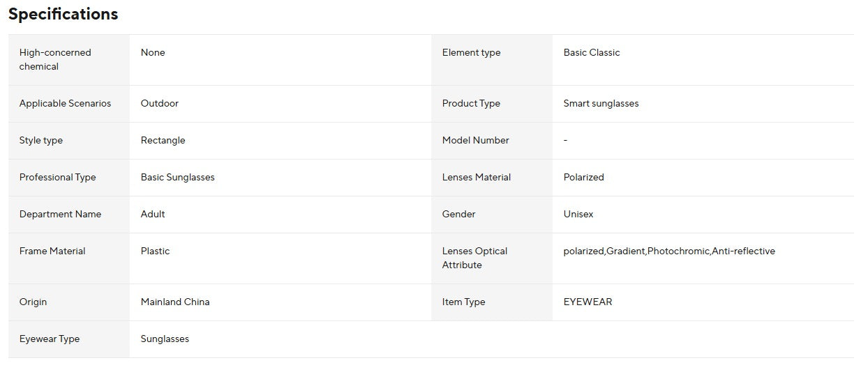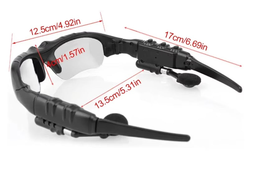 Glasögonen är 5.0 stereo-styrda med Bluetooth och utrustade med hörlurar som kan användas med Android- och iOS-telefoner.